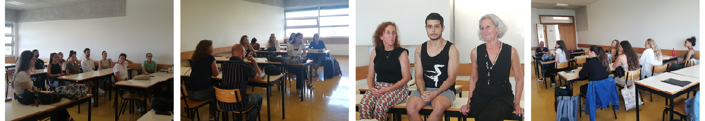 Neste mesmo dia 11 de setembro, cerca das 12h00, teve lugar uma sessão mais restrita, dirigida unicamente aos novos estudantes do Mestrado de Criação Coreográfica e Práticas Profissionais, com a presença de Madalena Xavier (coordenadora) e João Fernandes, da Comissão Científica do curso, e com a colaboração dos Serviços Académicos da ESD.
